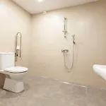Det finns delade badrum med en handikappdusch och ett handfat.
